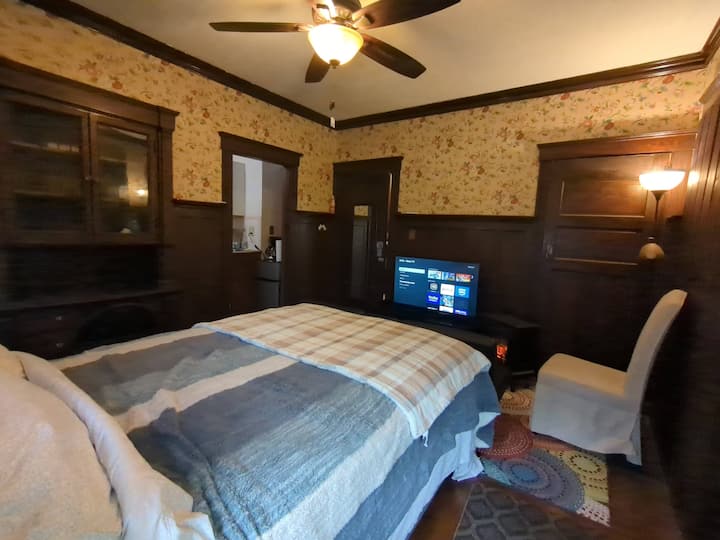 هذا هو جناح الضيوف في البيت. حصريًا لاستخدامك: غرفة نوم أنيقة وحمام كامل ومطبخ صغير مجهز تجهيزًا جيدًا.