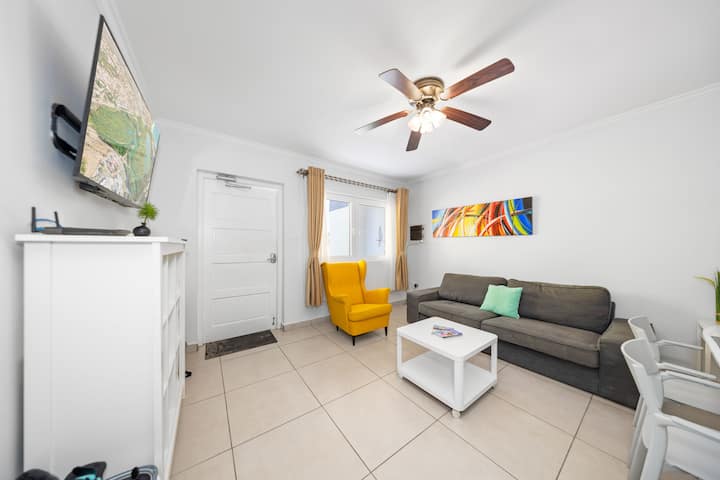 شقة جميلة بغرفة نوم واحدة وحمام واحد ~ يُمكنك المشي إلى الشاطئ ~ حمام سباحة ~ شواء