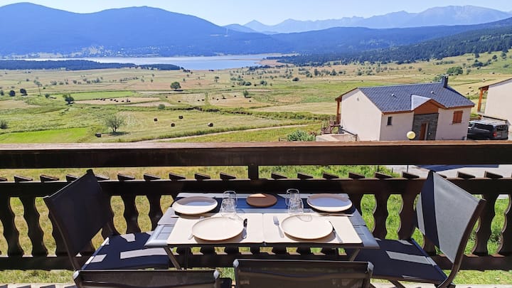 شقة بإطلالة على البحيرة وشرفة ومرآب