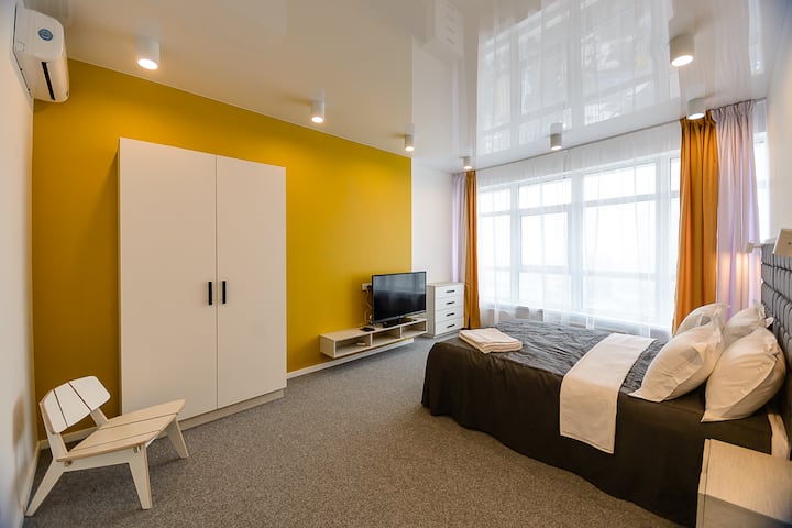 شقة فسيحة جديدة ذات إطلالة على المدينة