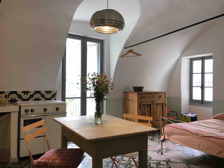 نحن نعيش هنا منذ عام 2014. لقد تركنا العاصمة لحياة ريفية أبسط وأكثر، على اتصال مع الطبيعة. فيليب هو مزارع خباز ويصنع الخبز مع العجين المخمر، الذي يتم خبزه في الفرن الذي يحرق الخشب أسفل المنزل. ترعى فيديريكا ماعزها الجميلة في الحديقة الإقليمية الرائعة لجبال الألب الليغورية حيث نجد أنفسنا. الأولاد، ماريوس روميو وأوسكار، يدرسون ويساعدوننا.