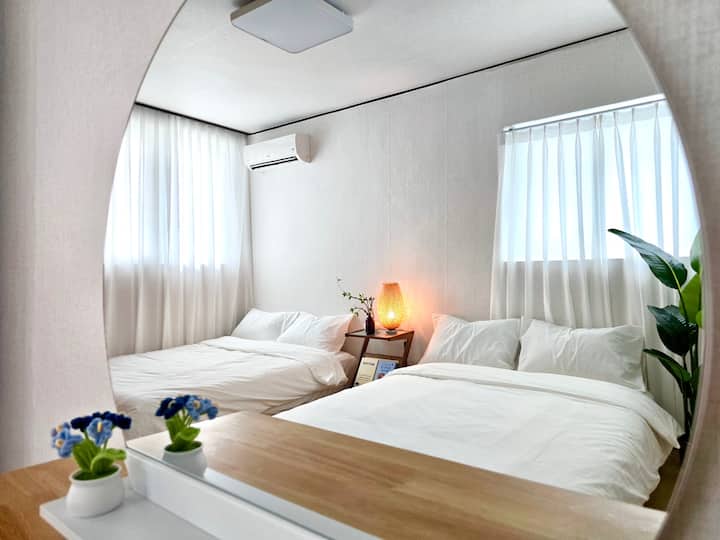 محطة إيسو 3 دقائق / الطابق الثاني / 8 أشخاص بحد أقصى / حافلة المطار 5 دقائق / 3 غرف / 5 أسرة / شارع المطاعم ، سوق تقليدي 1 دقيقة / وسائل النقل