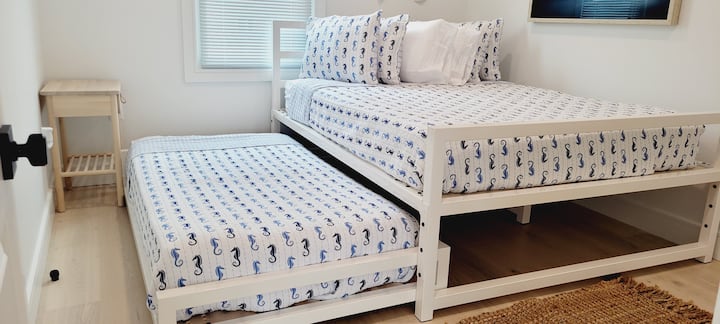 غرفتا نوم عصريتان - يمكنك المشي إلى الشاطئ والممر الخشبي والمطاعم!