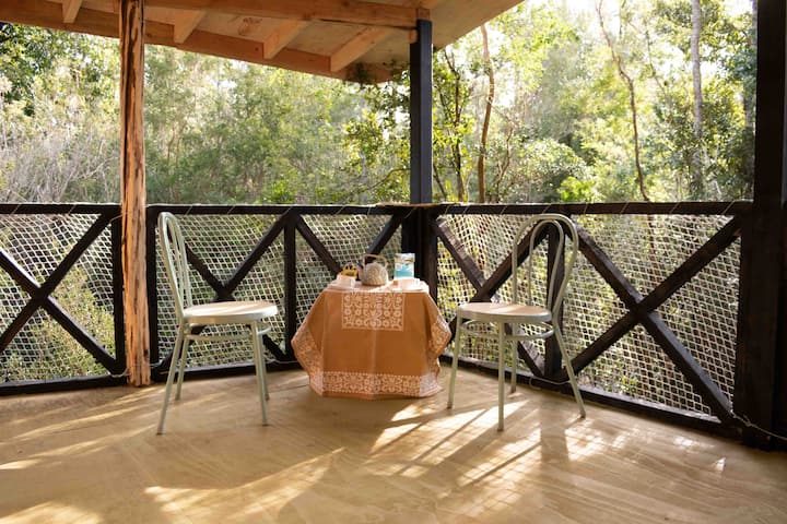شقتان مريحتان محاطتان بالأشجار.