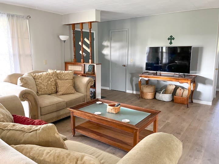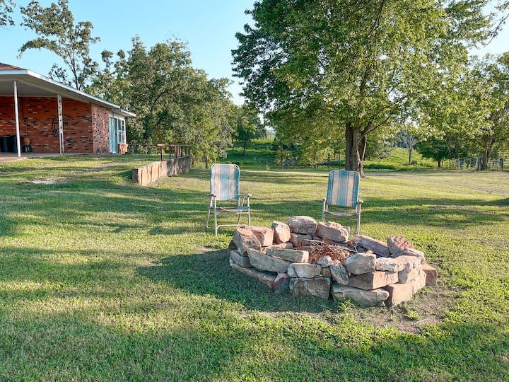 لقد نشأت في أوزاركس، وفي عام 1997، عدت أنا ومارك لإدارة مزرعة الماشية الخاصة بعائلتنا. لقد خصصنا عامًا لتجديد منزل أجداد مارك بمحبة، ويسعدنا مشاركة النتائج معك. سواء كنت هنا لاستكشاف المناظر الطبيعية الخلابة أو مجرد الاسترخاء في بيت مريح وتاريخي، نأمل أن تستمتع بالسحر والدفء الذي عملنا بجد لخلقه.