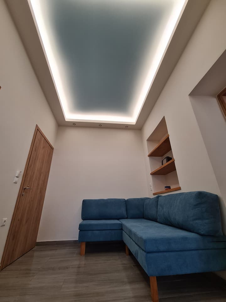 شقة مريحة مع إطلالة على آنو سيروس، على بعد 5 دقائق من المركز