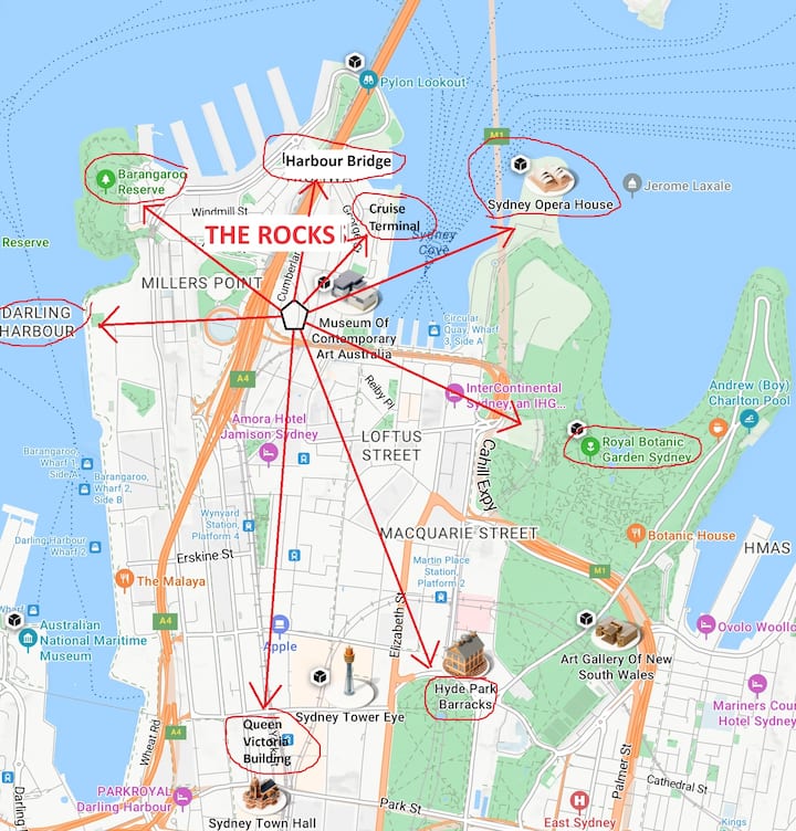 اكتشاف خيارات أخرى في The Rocks وحولها