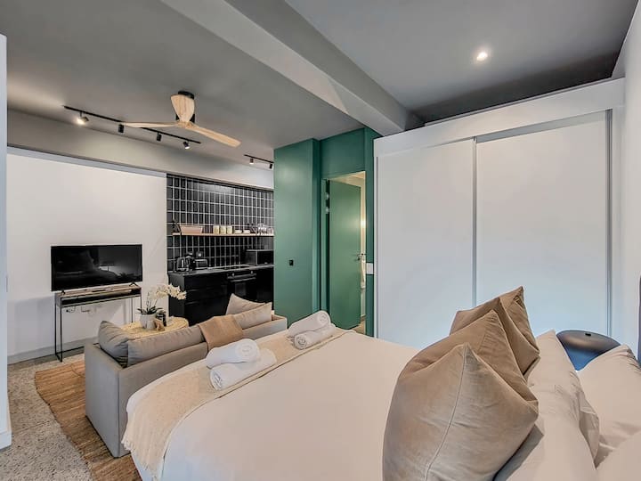 شقة في المدينة الحديثة - حمام سباحة على السطح ومكيف هواء