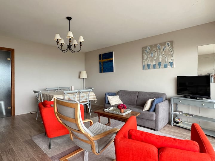 شقة مطلة على البحر بغرفتي نوم + موقف سيارات يتسع لسيارتين