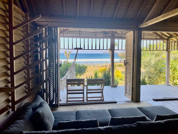 بيت مورومورو الخشبي المواجه للشاطئ في غرب سومباوا