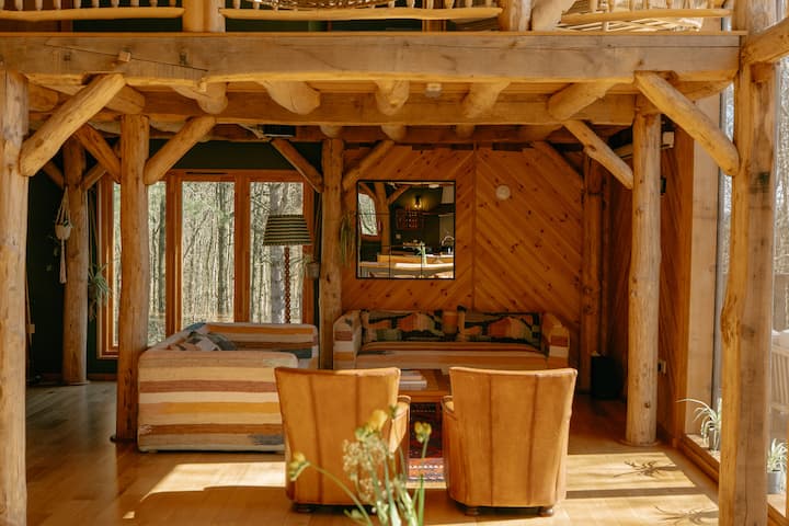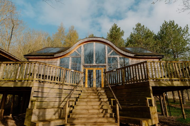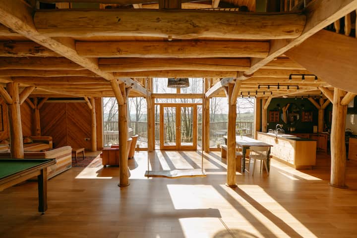 بيت شجرة مكون من 4 غرف نوم مع شرفة وفرن بيتزا وشواية