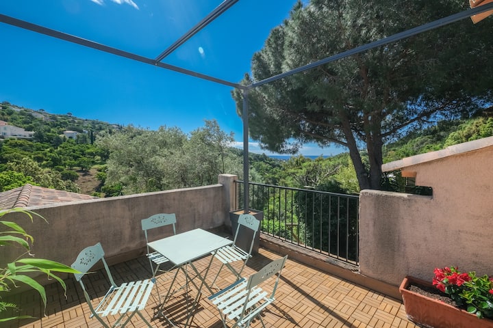 فيلا تم تجديدها، حمام سباحة بإطلالة على البحر، مكيف هواء، شاحن سيارات كهربائية