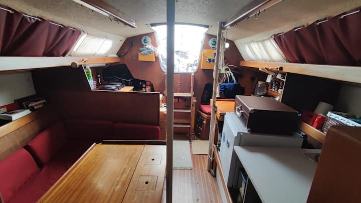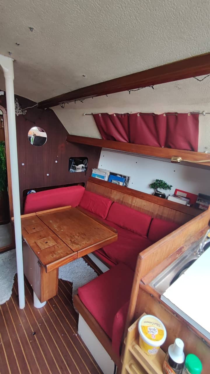 مركب شراعي على الأرض والبحر، مزروع بالنباتات