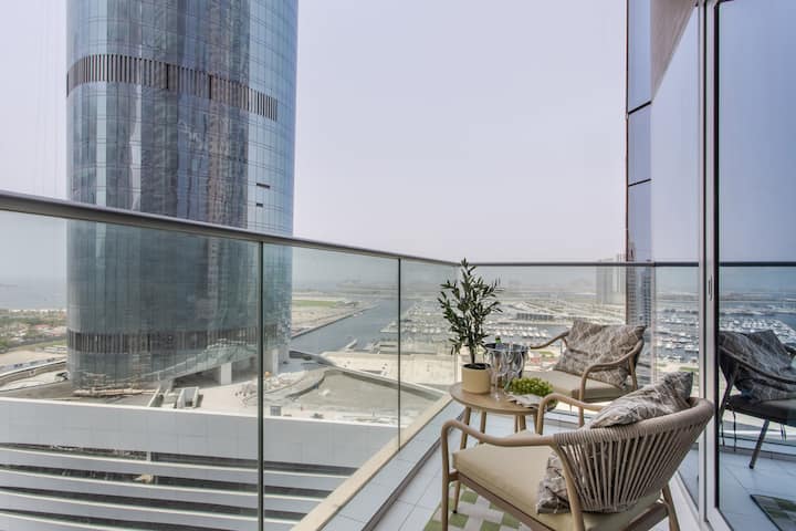 غرفتا نوم مشرقتان في مرسى دبي مع إطلالة على النخيل!