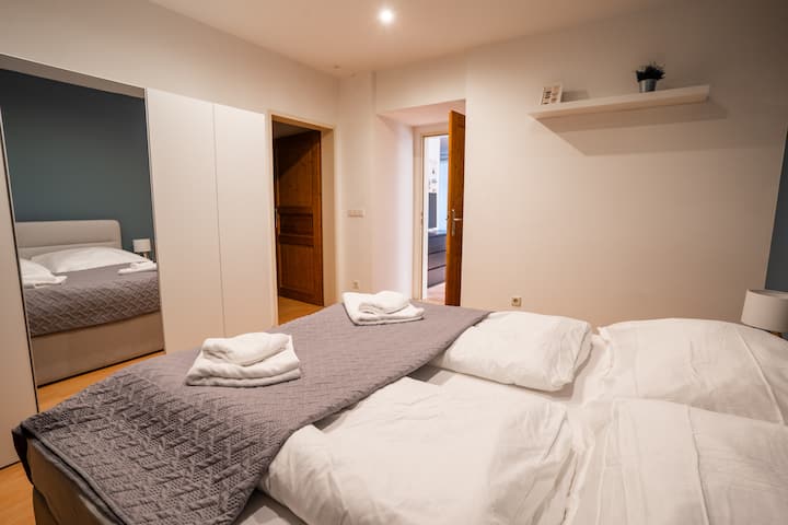 شقة بغرفتي نوم مع حوض استحمام وواي فاي وتلفزيون ذكي بالقرب من المركز