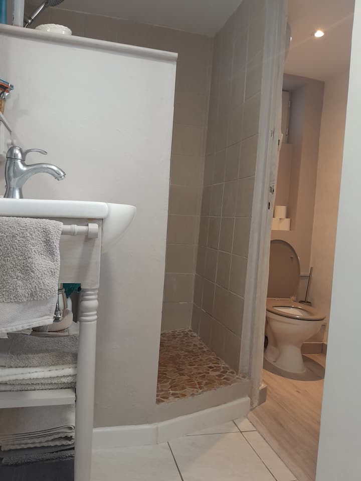 - نصف حمّام خاص خارج الغرفة