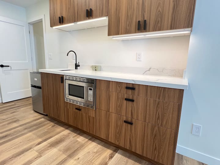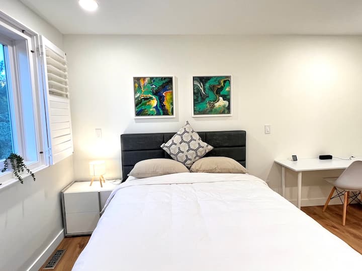 استوديو فاخر جديد، حمام ملحق، 15 قدمًا من المطار