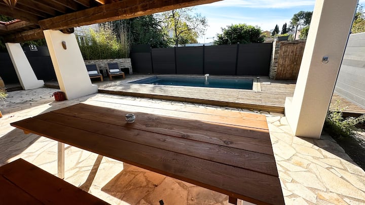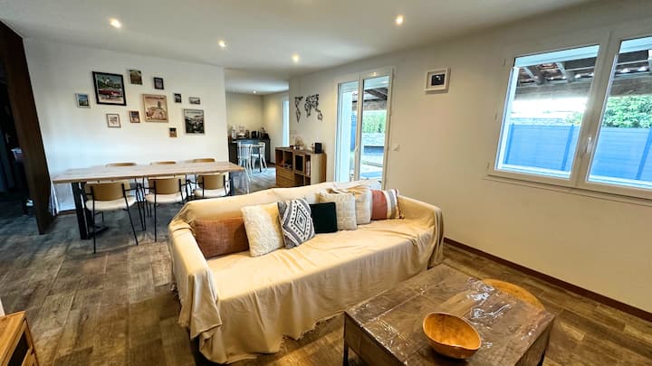 فيلا أنيقة، حمام سباحة، مكيف هواء، مساحة عمل