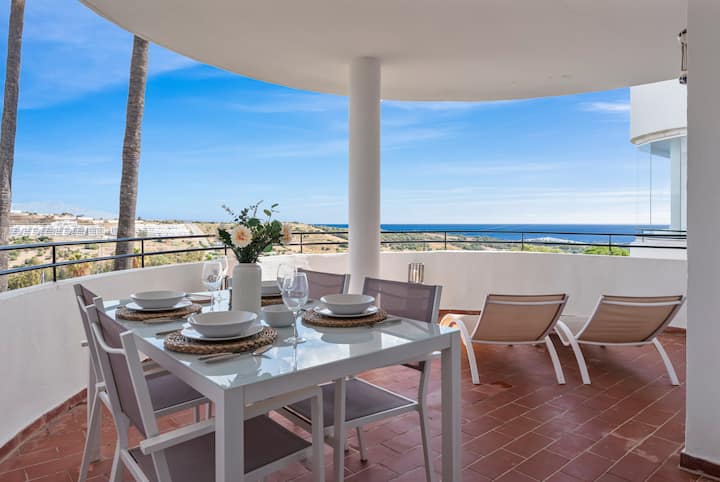 شقة بإطلالة بانورامية على البحر مع حمام سباحة