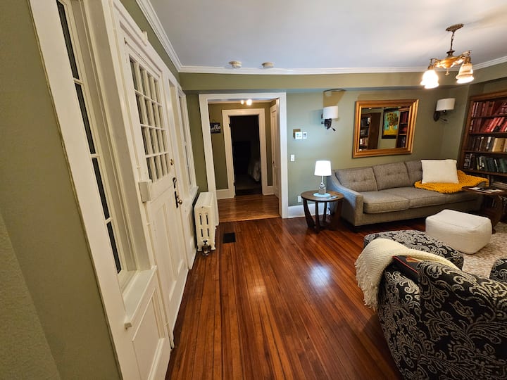 شقة في الشارع الرئيسي تتسع لثلاثة أشخاص؛ مدفأة؛ حمامان ونصف