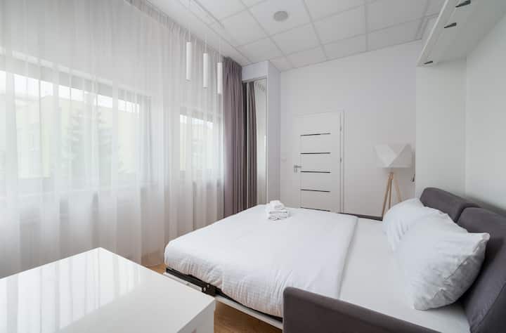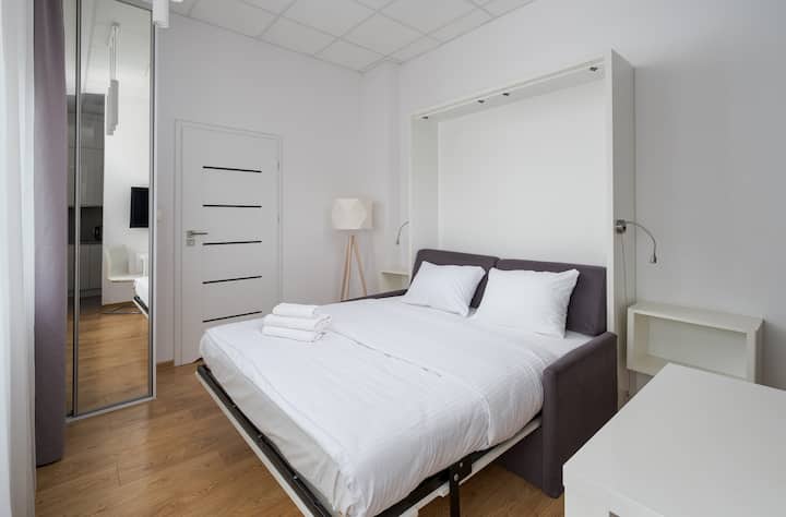 نحن نتعامل مع الضيوف بشكل احترافي. مهمتنا هي تقديم الخدمات على أعلى مستوى من الفنادق في شقق الإيجار قصيرة الأجل. نحن نحرص شخصيًا على إعداد كل شقة لوصول الضيوف. في معيارنا، نقدم: مستحضرات تجميل فندقية عالية الجودة وشقق مجهزة تجهيزًا كاملاً ومجموعة أدوات ترحيب لكل ضيف: القهوة والشاي والماء والهدايا الحلوة. كن مطمئنًا إلى أن الإقامة في شقق تديرها BookingHost ستترك ذكريات جميلة وتجعلك تعود إلينا. نحن أشخاص نتشارك شغفًا بالسفر. في كل مرحلة من مراحل حجزك، ندعوك للاتصال بنا. نود أن نوصي بأفضل المطاعم في المنطقة والأماكن الأكثر إثارة للاهتمام لزيارتها.