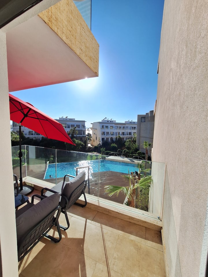 شقة بحمام سباحة مطلة على البحر