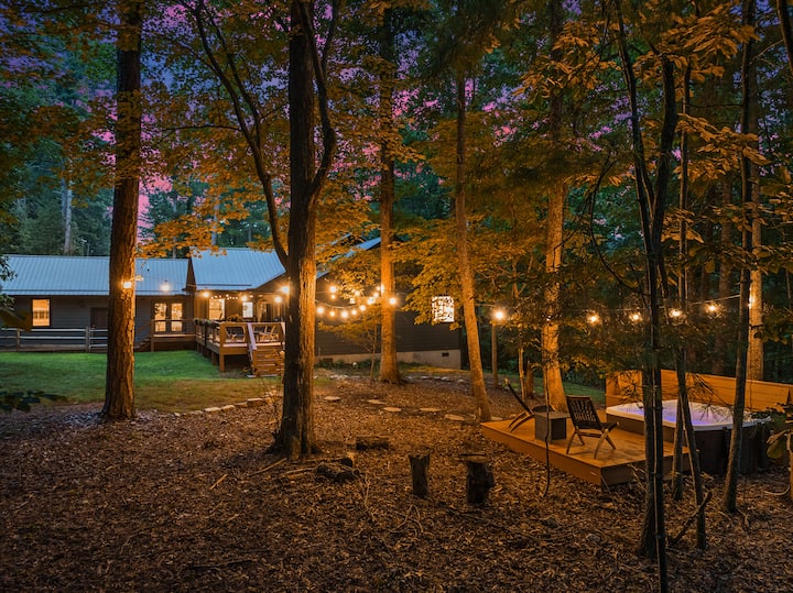 منزل فاخر في الغابة • 2 ميل إلى وسط المدينة • حوض استحمام ساخن • حفرة نار