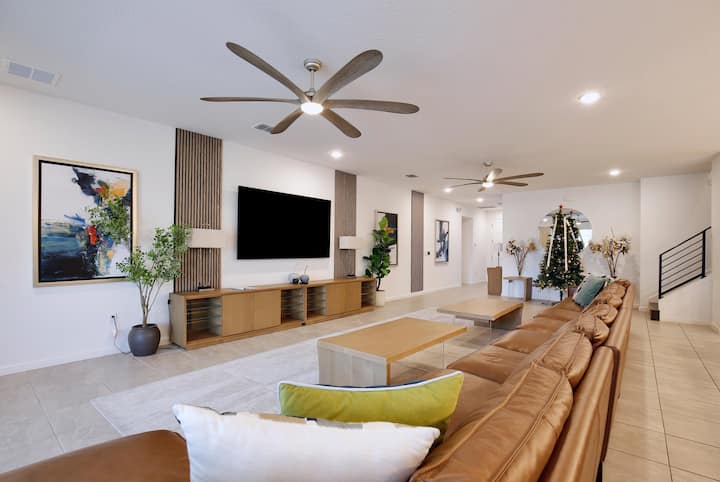 بيت فاخر جديد يضم 15 سريرًا و17 حمامًا، يتسع لـ 38 شخصًا، مع حمام سباحة