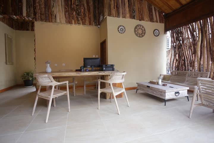 منتجع نوسا سامرفيل. هو مزيج فريد من التصميم الإندونيسي التقليدي وشبه الحديث المميز في مساحات المعيشة ذات الطابع الخشبي في المنتجع.