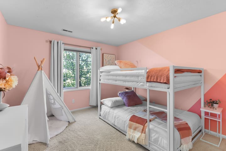 بيت عائلي في غرب أوهايو: حوض استحمام ساخن، حفرة نار، غرفة ألعاب