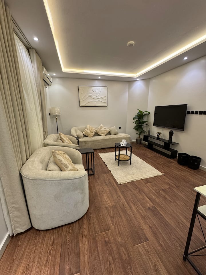 غرفة وصالة بأثاث راقي ودخول ذكي
