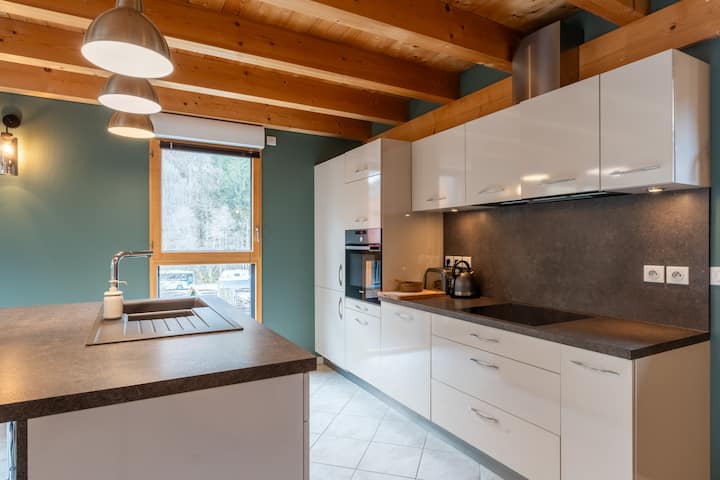 بيت مريح، شرفة، تراس قريب من منتجعات التزلج