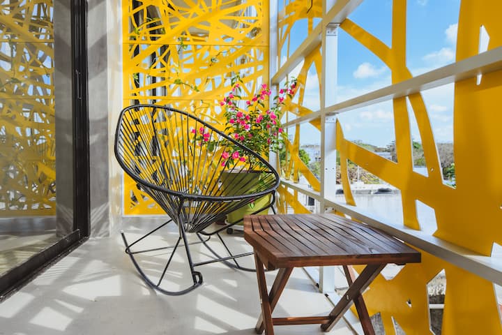 شقة علوية مريحة، سطح مع جاكوزي، وسط كانكون