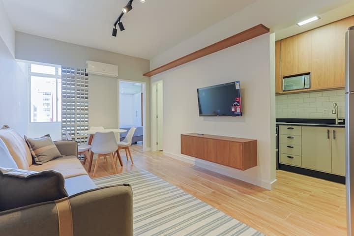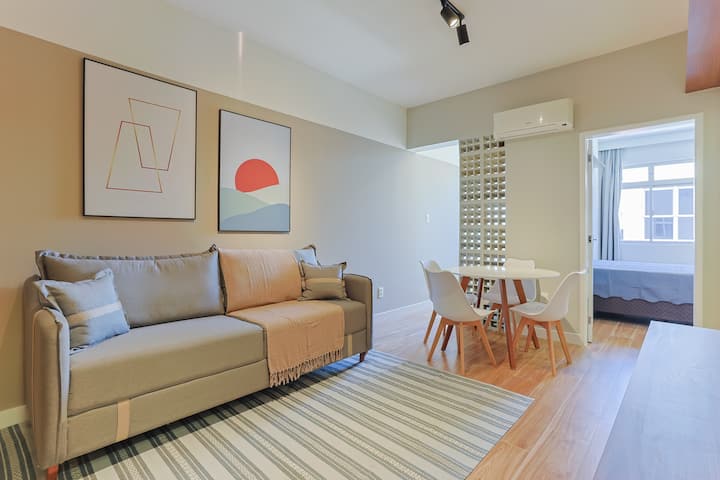 اكتشف أقصى درجات الراحة والأناقة في عقارنا الذي تم تجديده وتزيينه في أفضل موقع في وسط مدينة فلوريانوبوليس. مع غرفة نوم واحدة وغرفة معيشة ومطبخ وحمام، توفر الشقة مكيف هواء في غرفة النوم وفي غرفة المعيشة. تم تأثيث وتزيين مؤخرًا، وتم تصميم كل التفاصيل لراحتك. يتيح موقعها الاستراتيجي سهولة الوصول إلى المعالم السياحية الرئيسية. سواء للعمل أو الترفيه، فهذا هو الملاذ المثالي لإقامة لا تنسى في فلوريانوبوليس. احجز الآن!