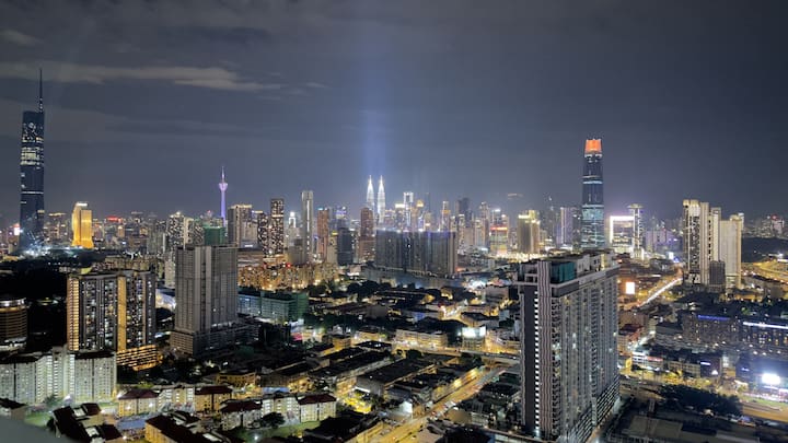شقة مريحة بإطلالة على klcc بغرفة نوم واحدة مع شرفة تريون في كوالالمبور