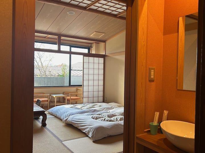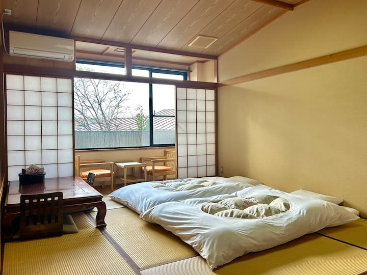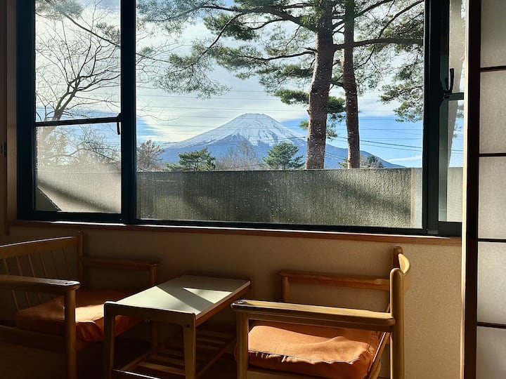 غرفة نوم يابانية 208 تطل على جبل فوجي، على بعد 5 دقائق سيرًا على الأقدام من بحيرة جبل فوجي الواقعة عند سفح جبل فوجي