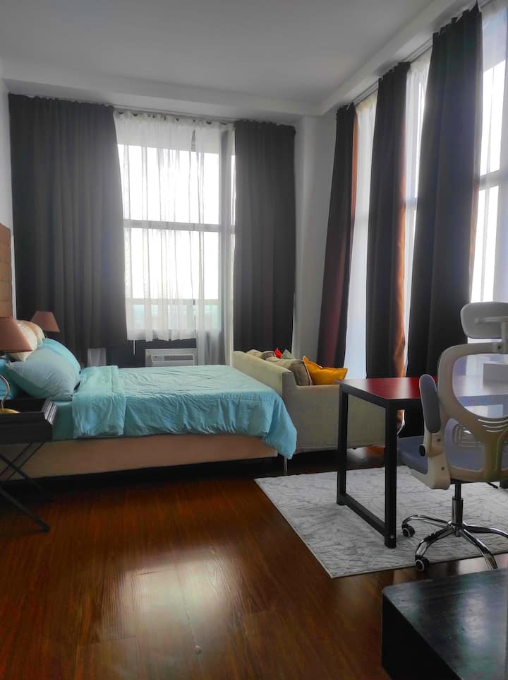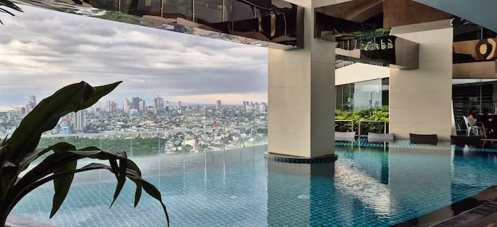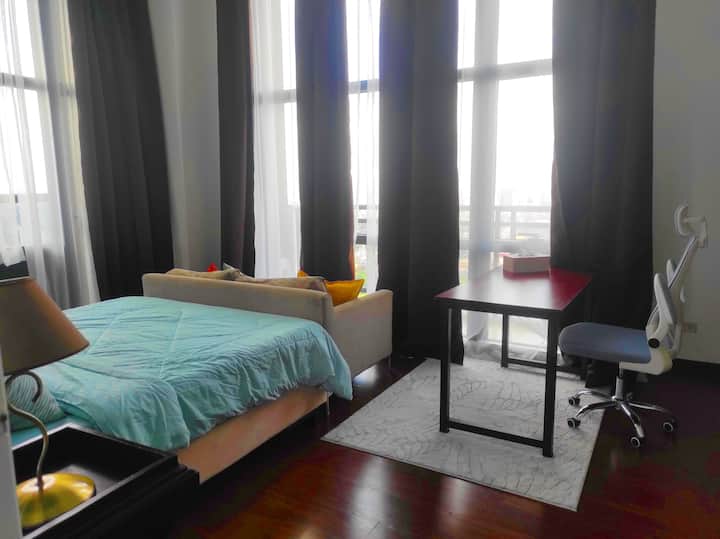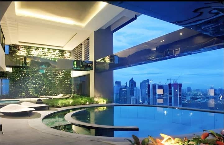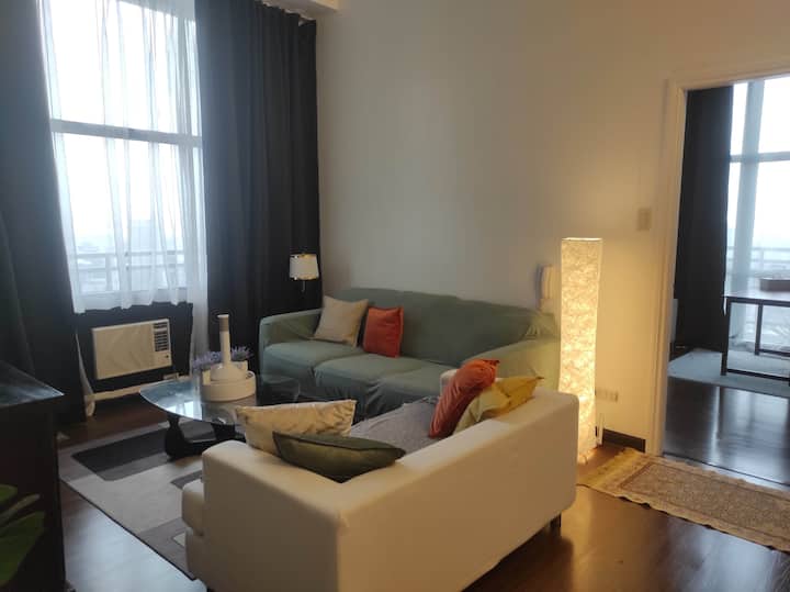 عرض ترويجي!!️شقة كبيرة بغرفتي نوم في ماكاتي الفلبين | تلفزيون 55 بوصة | مدخل إلى المول
