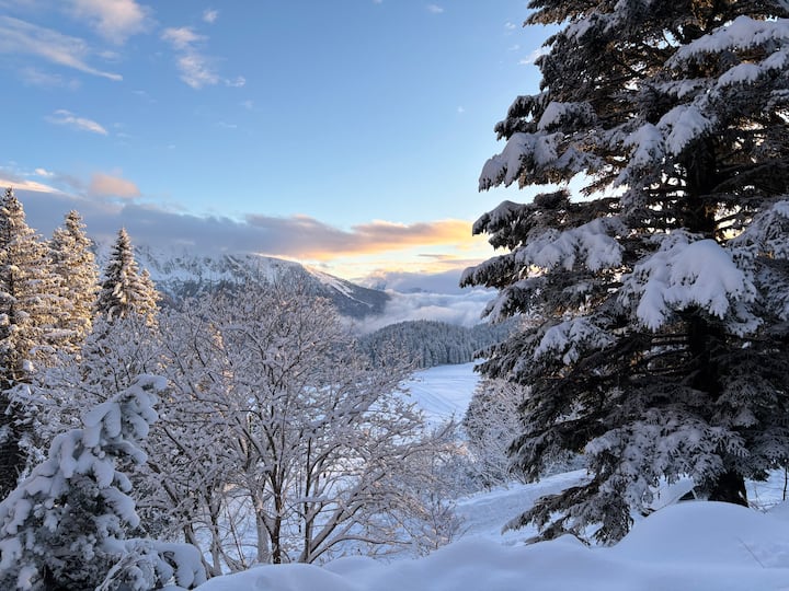 T2 + زاوية جبلية، جنوبية بالكامل، شرفة
