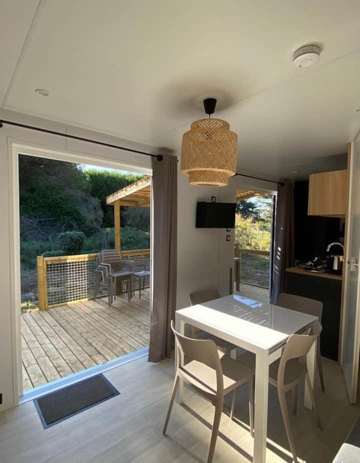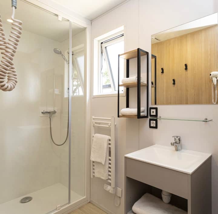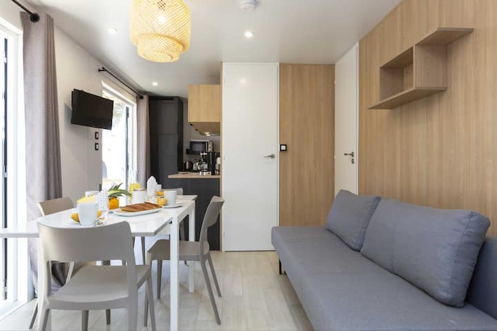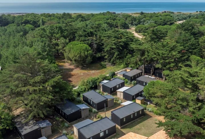 بيت متنقل يقع في موقع تخييم هادئ في قلب منطقة طبيعية شاعرية غير ملوثة. ويتمتع بأكبر قطعة أرض في موقع المخيم، مع موقع دون أي مقابل، والوصول المباشر إلى شاطئ بري وهادئ. إنه ملاذ للسلام لمحبي الطبيعة، مع أشجار جميلة عمرها قرن من الزمان وبيئة طبيعية خلابة. يقع في موقع مناسب على بعد 5 دقائق فقط بالدراجة من وسط مدينة Bois - Plage - en - Ré.
