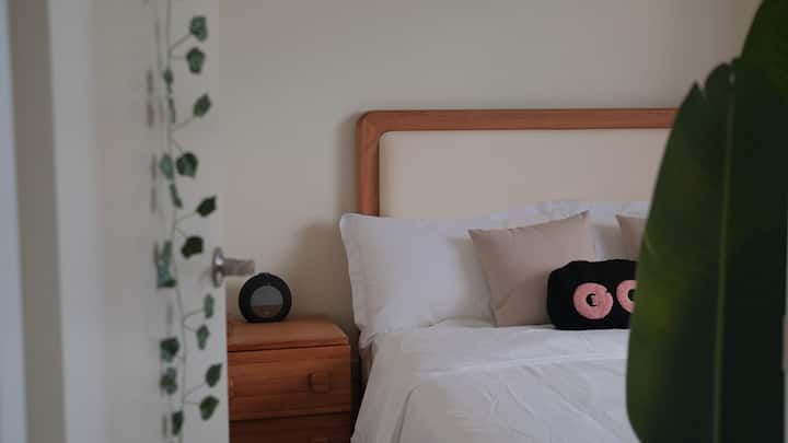 غرفة نوم واحدة مريحة وحديثة مع إطلالة على السماء العالية والمدينة