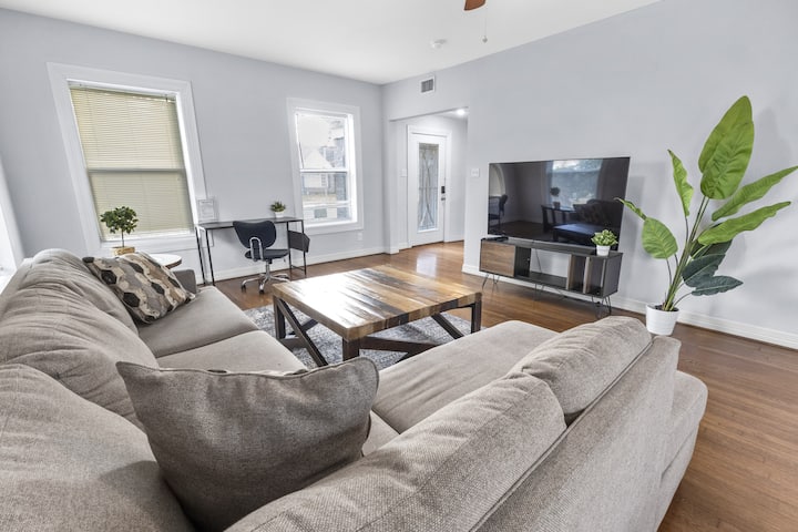 ملاذ حديث مكون من 3 غرف نوم | يتسع لـ 8 أشخاص | موقف سيارات + واي فاي سريع