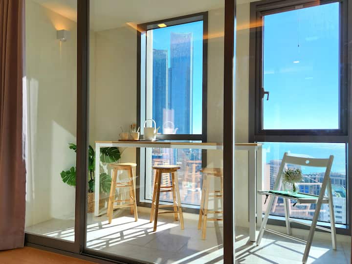 L30-8 [إقامة جديدة / قانونية] [إطلالة جانبية على المحيط من الطابق العلوي / وسط المدينة / شاطئ هاونداي 5 دقائق / محطة مترو الأنفاق 3 دقائق / تخزين الأمتعة]