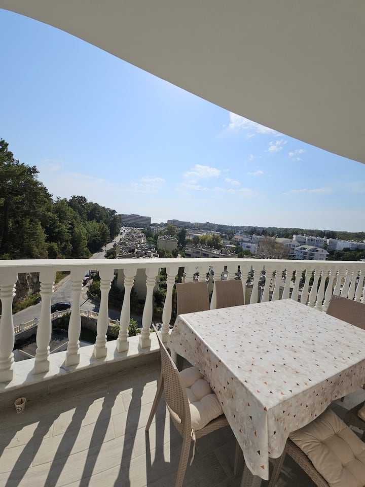 شقة دافئة مع إطلالة على البحر وشرفة كبيرة وإمكانية الوصول إلى الشاطئ!