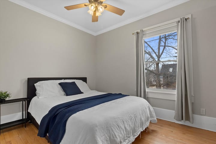 غرفة نوم واحدة مشرقة ومريحة في الطابق العلوي بجانب النهر