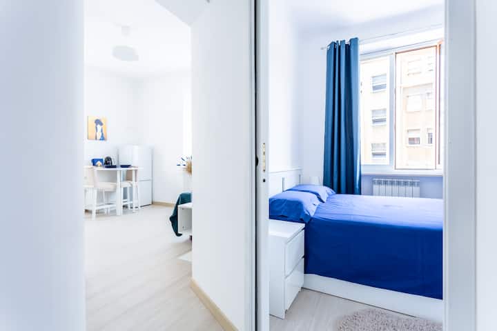 شقة حديثة مكونة من غرفتين بالقرب من المحطة، واي فاي وراحة