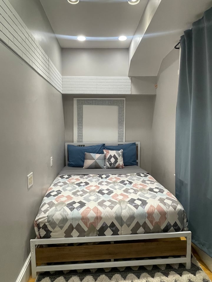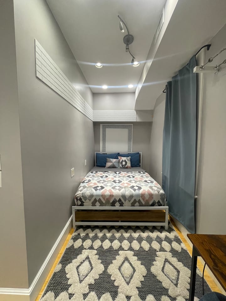 غرفة صغيرة وهادئة مع سرير كامل في نيوتن