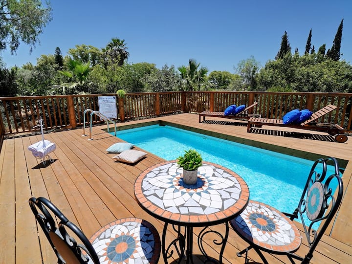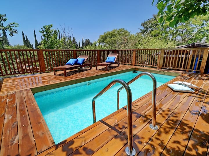 في مجمع الفناء معنا في إنديجولان، يمكنك الاستمتاع بحمام سباحة داخلي ومدفأ ومسيج بجوار أسرّة التشمس ومرفق الشواء (الشواء) وطاولات الحديقة ومناطق الجلوس والأرجوحة للاستمتاع بالهدوء السحري معنا في الجولان.