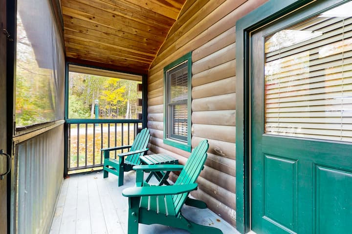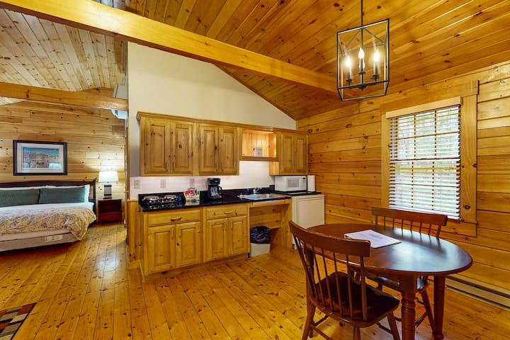 كوخ جميل مع مدفأة وصالة ألعاب رياضية وواي فاي