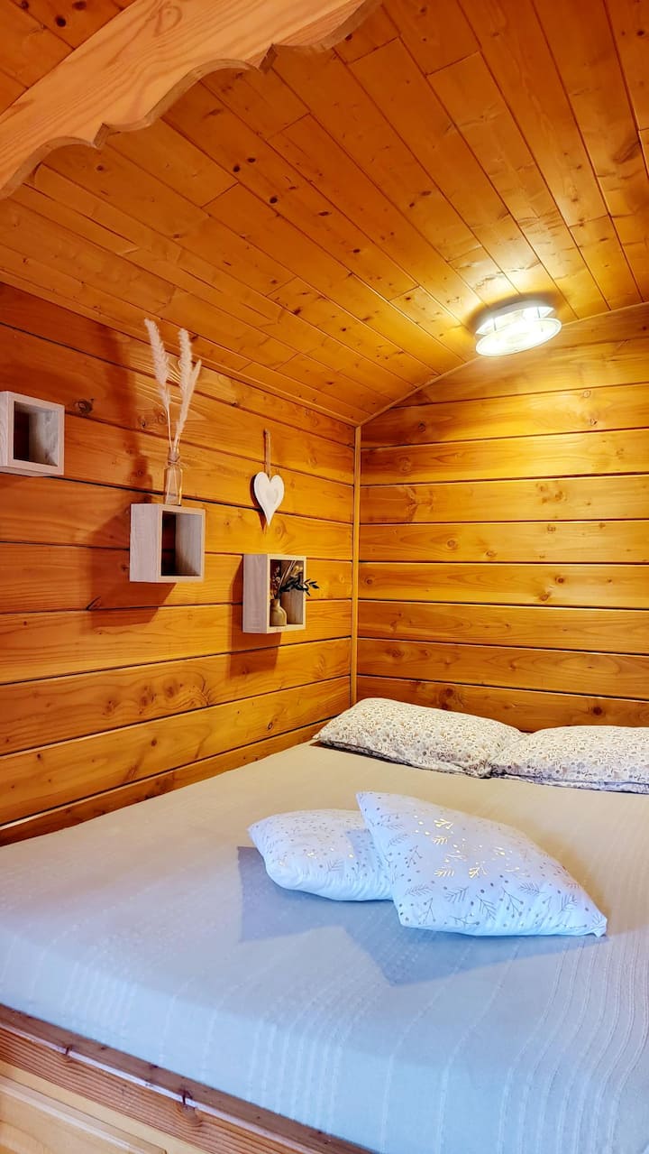 يرحب بك ديفي وفيرجيني في مرتفعات ليمو في قلوب أشجار البلوط حيث يمكنك الهروب في أحد المقطورات التي تتسع لشخصين أو ثلاثة أشخاص.