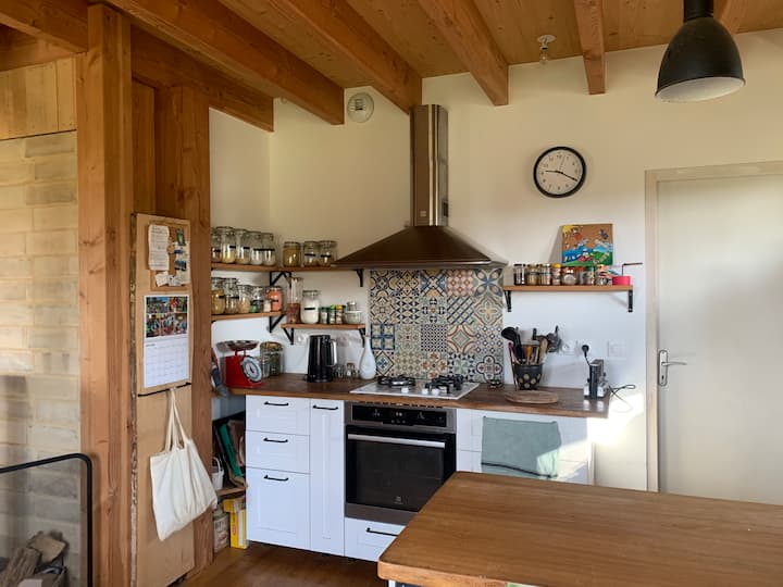 نحن عائلة مكونة من 5 أفراد مع 3 أطفال تتراوح أعمارهم بين 8 و 7 و 3 سنوات. نحب المشي في الطبيعة، والدردشة مع الناس، وقضاء بعض الوقت مع العائلة، والاستمتاع بحديقتنا، والتي ستتمكن من الوصول إليها بالطبع.